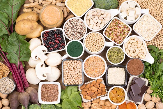 - حبوبات: عدس، نخود، لوبیا و سویا، غنی از آهن و پروتئین هستند.