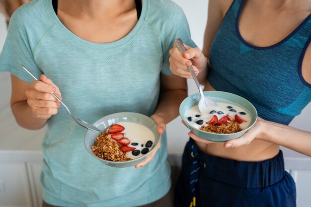 میوهها و سبزیجات رنگی مانند توتها، اسفناج و کلم بروکلی سرشار از آنتیاکسیدان هستند که به کاهش استرس اکسیداتیو ناشی از ورزش شدید کمک میکنند. مطالعهای در Journal of the International Society of Sports Nutrition نشان میدهد که رژیمهای سرشار از ترکیبات گیاهی میتوانند التهاب پس از تمرین را کاهش دهند.
